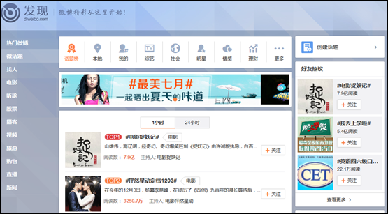 微博热门话题:热门微博、微话题、话题榜、本地等。