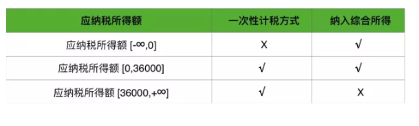 # 当应纳税所得额大于36000时,一次性计税方式合适。