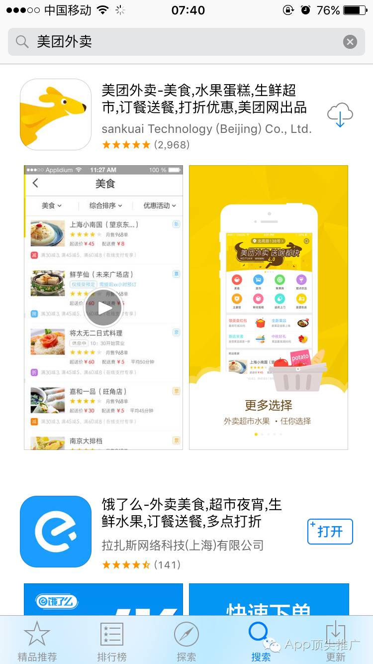 想必昨天各位移动圈的小伙伴们,都知道美团旗下系列产品遭遇App Store全线下架的一幕《爆炸新闻!今日美团旗下应用被App Store全线下架!是何原因?》,朋友圈从11点钟开始就刷屏。为此APP顶尖推广也在持续不断关注这次美团应用下架事件。接下来顶尖推广为您一一讲解!