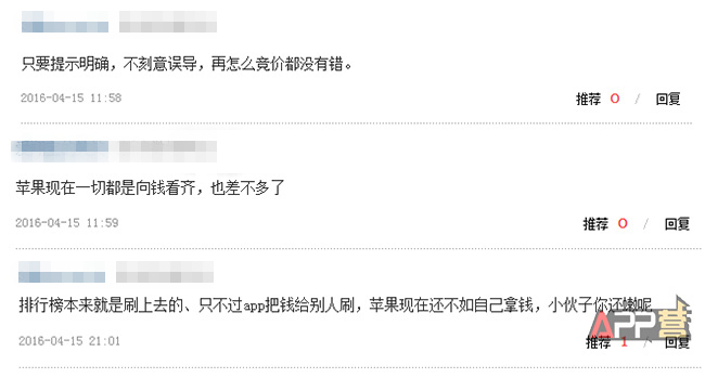 不看好者如:“苹果婊居然堕落到赚这种钱!”、“还让不让我们个人开发者活啊?”、“这是学百度的节奏,乱象丛生。”