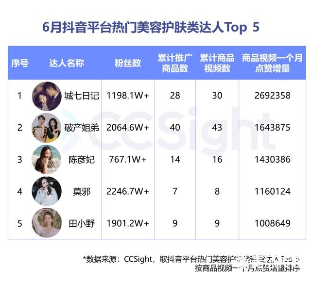13. 抖音:6月份热门精致彩妆、美容护肤类达人Top 5