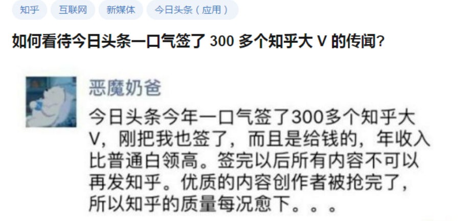 早在2022年,今日头条挖走300多位知乎大V的消息震惊互联网。今日头条的确是有备而来,只是知乎作为一个老牌问答平台,照理说不应该这么轻易就被挖走如此大量的大V。但今日头条就是这样掐中了知乎的软肋——答主在知乎赚不到足够的钱。