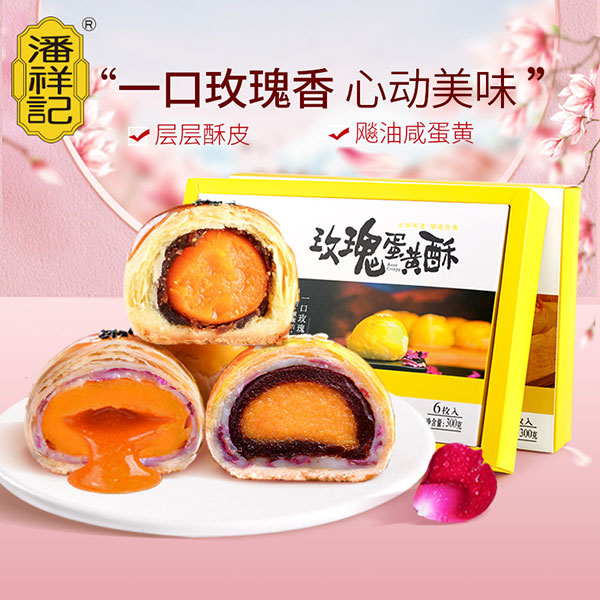 4.其他产品:鲜花蛋糕、鲜花冰糕、鲜花牛轧糖、鲜花蛋黄酥、玫瑰酱、蛋卷、曲奇、蛋琪玛、合桃酥等等,潘祥记均有生产。