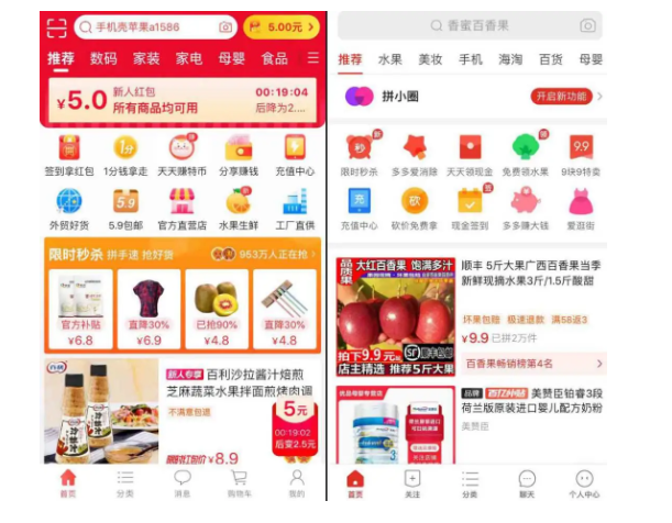 反观拼多多,虽然也是背靠微信,但自身则在不断吸纳APP用户,从“百亿补贴”进攻五环内到“多多果园”,拼多多的用户数和黏性都在以几何数增长。